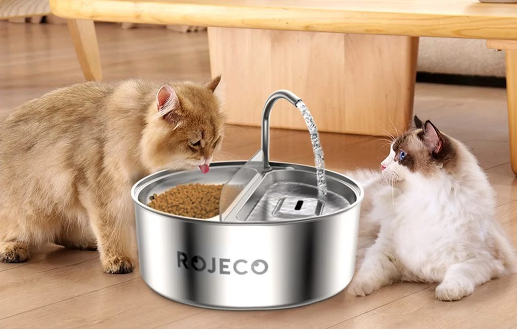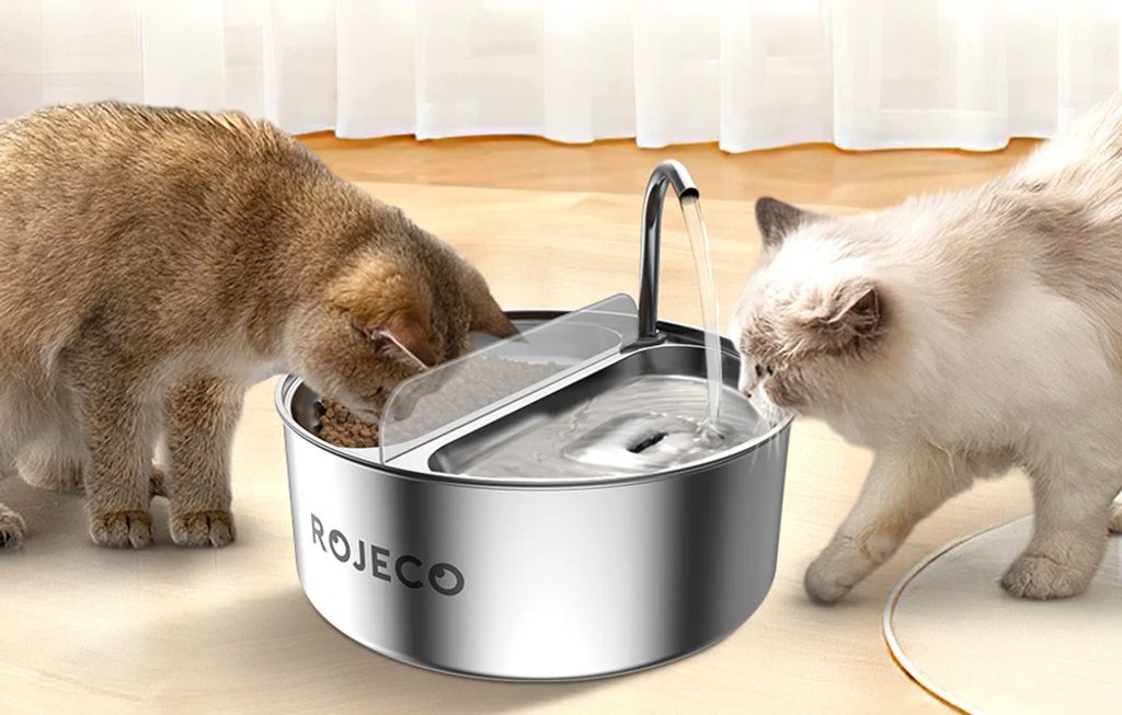 Bețigașul și bolul 2 în 1 pentru pisici de la Rojeco oferă animalului dvs. de companie apă proaspătă și mâncare gustoasă. Fabricat din oțel inoxidabil 304 de înaltă calitate, este complet sigur pentru sănătate și durabil. Oferă două compartimente separate (pentru băut și mâncare), o capacitate de 3,2 litri și funcționare silențioasă. Robinetul încorporat asigură un flux constant de apă.