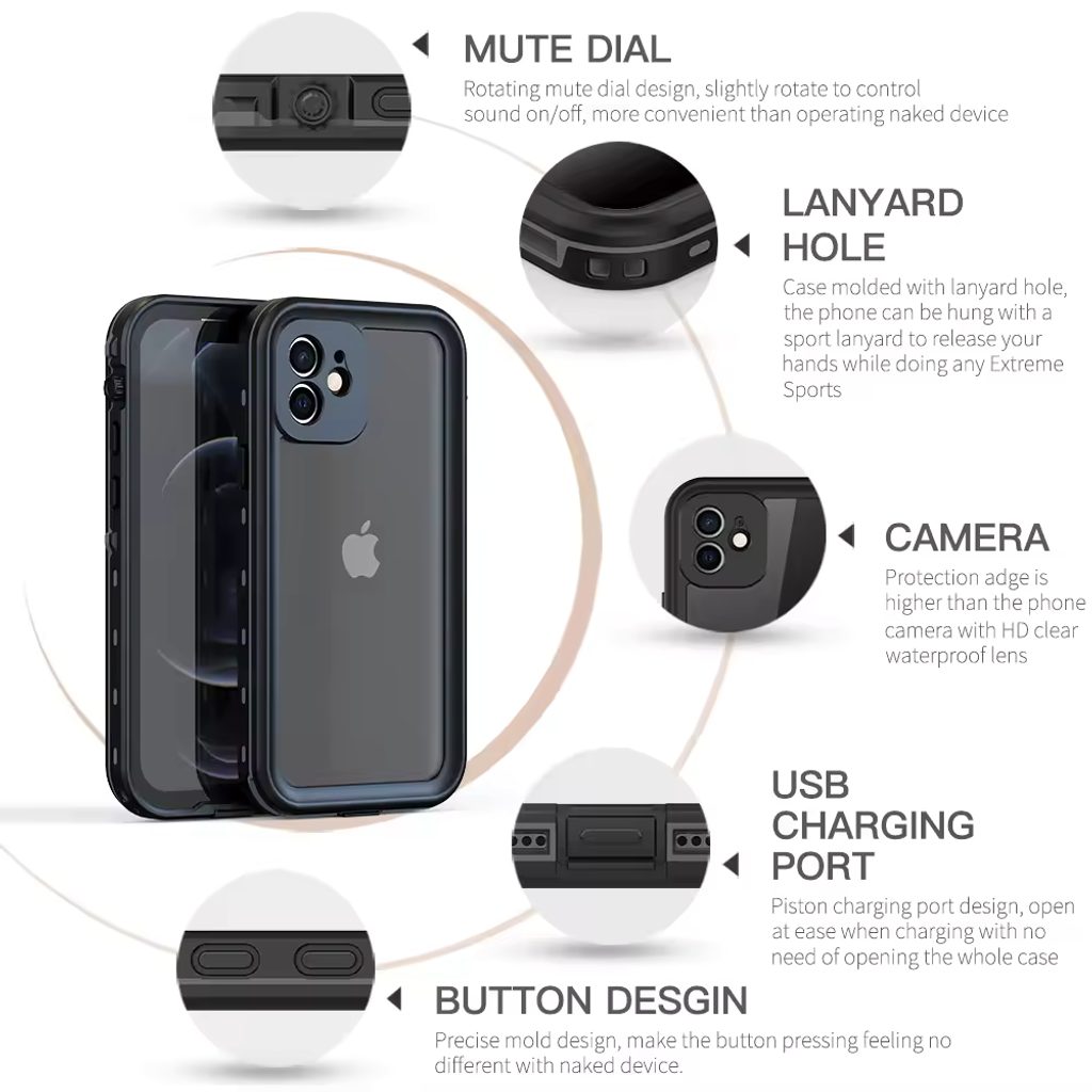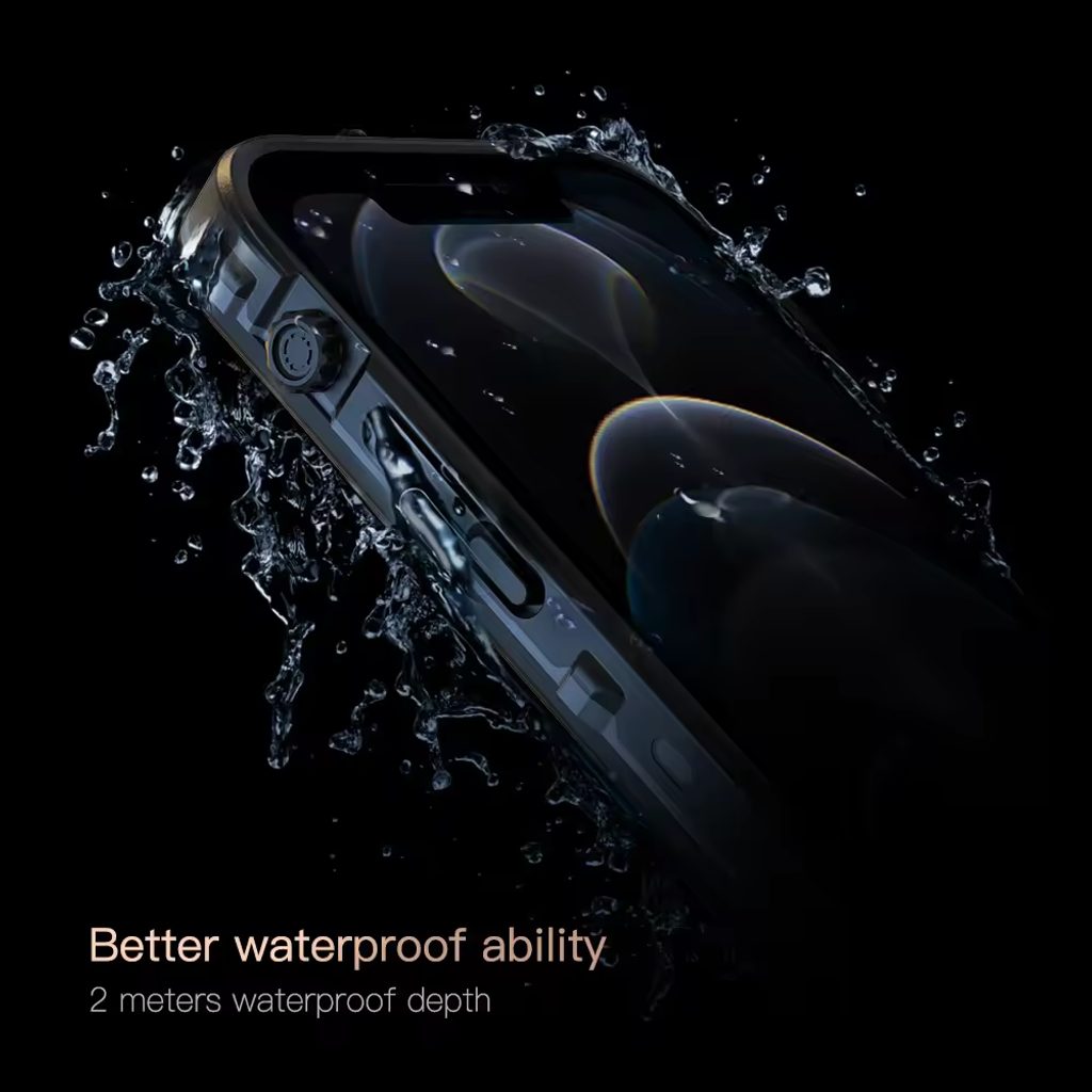 Carcasa rezistentă la apă ShellBox cu protecție IP68 este un produs extrem de durabil. Rama care înconjoară spatele și marginile dispozitivului este fabricată dintr-un amestec de termoplastic moale și strat de policarbonat întărit. Datorită texturii ramei, telefonul se ține sigur în mână, iar sticla integrată protejează în continuare ecranul telefonului.