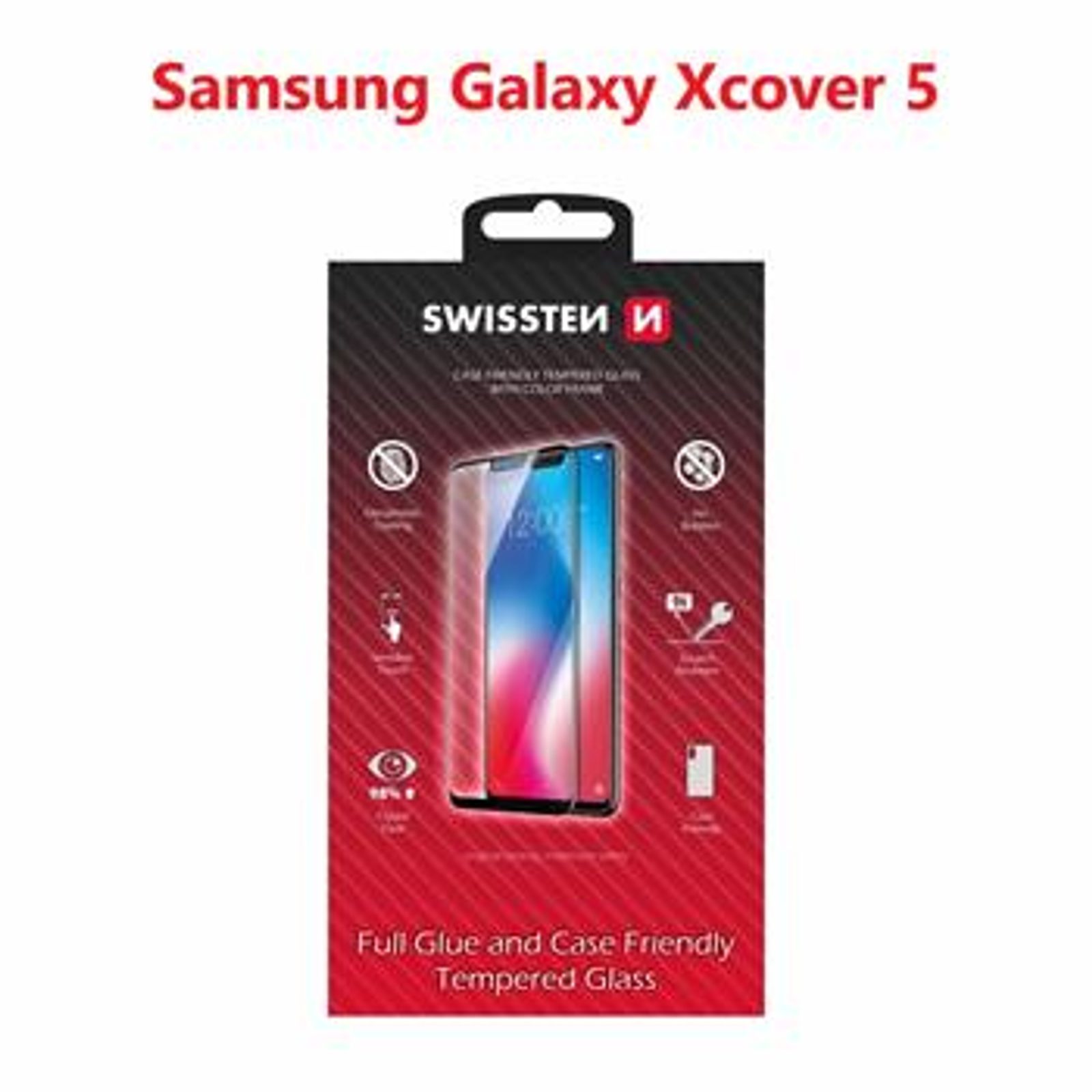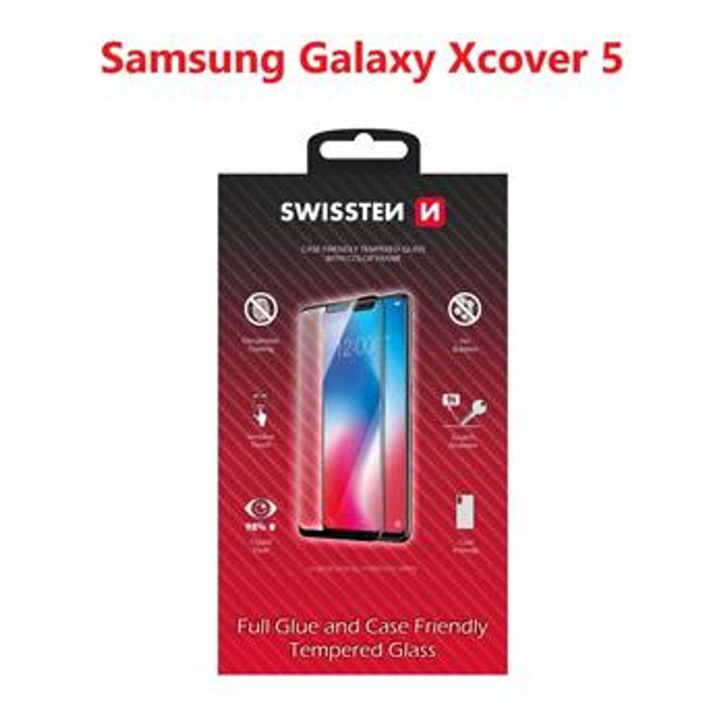 Swissten Full Glue, Color frame, Case friendly, Folie de sticlă securizată protectoare, Samsung Galaxy XCover 5, neagră